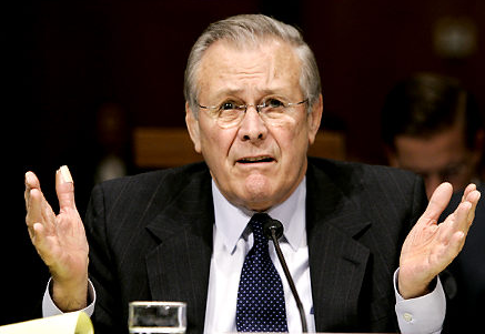 You know, Rumsfeld has a sense of humor. He’s a likable guy. His former staff may disagree, however. He inundated them when in office with millions of snowflakes or memorandums as he calls them. He kind of reminds you of a distant uncle who promises quarters if you can answer his questions; except, he never pays up.