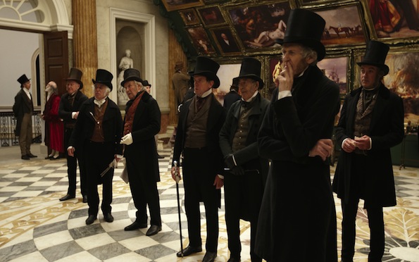I highly recommend that you refrain from watching Mike Leigh’s biopic Mr. Turner if you have had a pleasant day; just close it out with a mug of hot chocolate and a snuggle into your grandmother’s afghan or Aunt Gertrude’s quilt. Contemplate the sunset or the close of the horizon as dusk makes its way to welcome the night. Or, if your fuddy-duddy tendencies have reared their ugly heads and a rainbow and a smiley face are the last things you need, then Leigh’s Mr. Turner is just the film for you—all one hundred and fifty minutes of it!