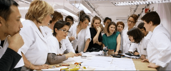 seamstresses study a design